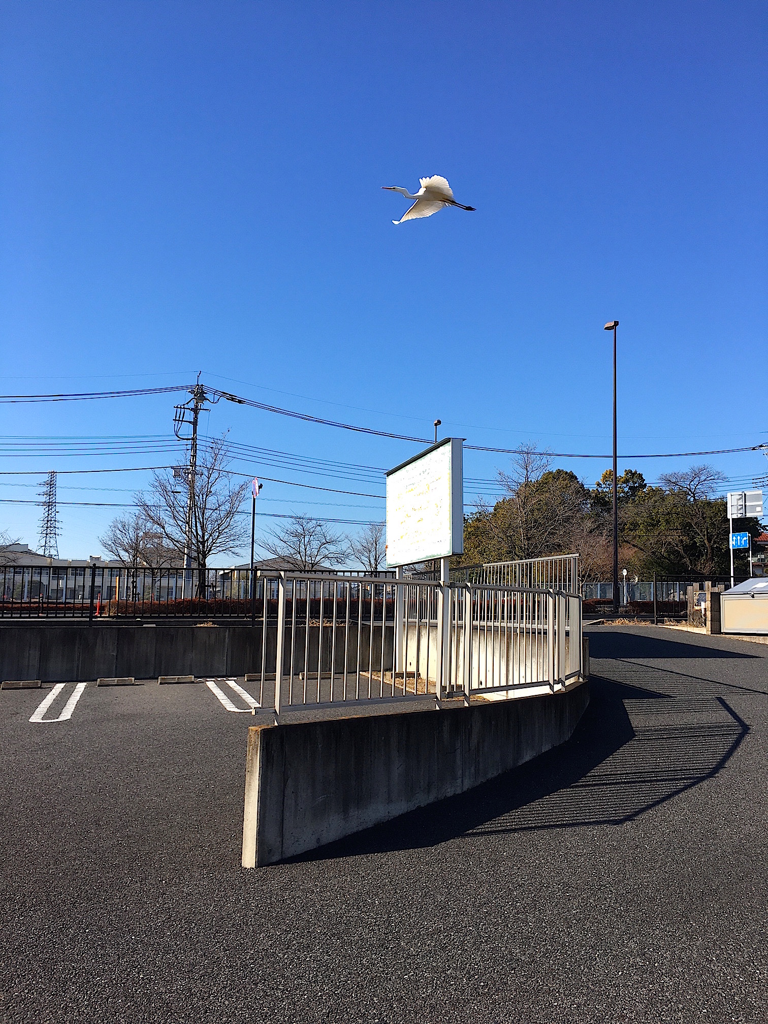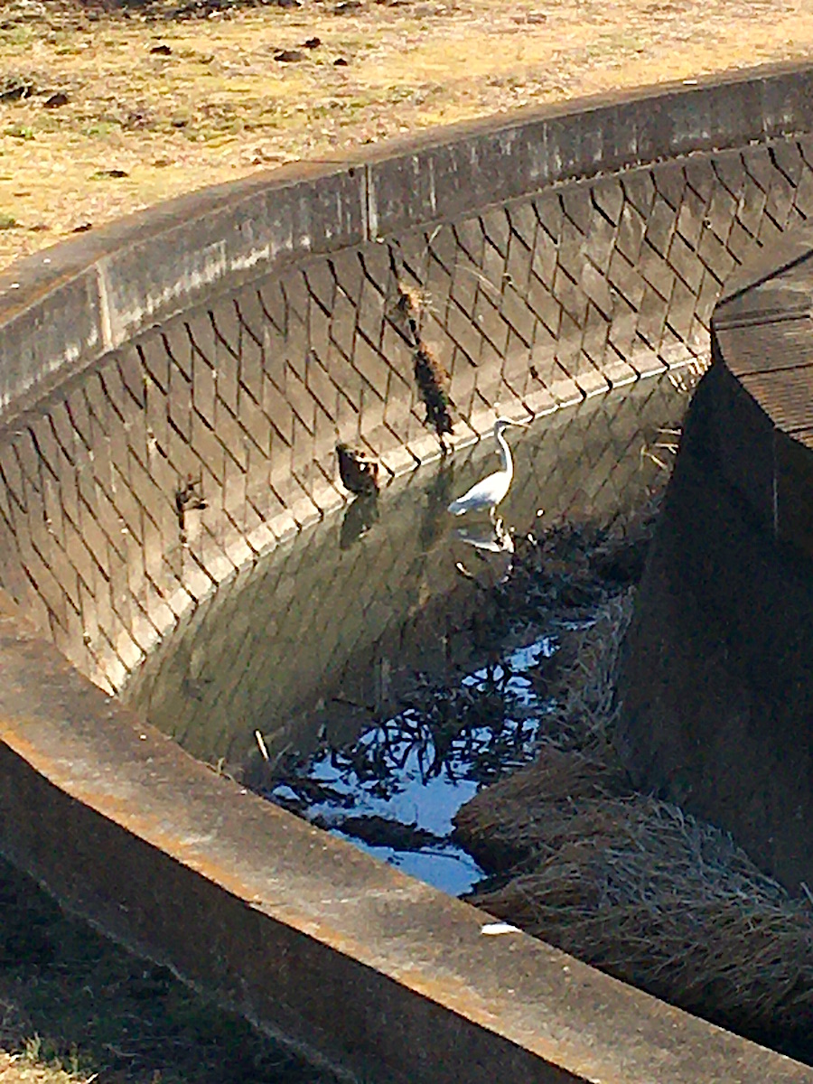 アパートのすぐ脇を流れる小川に住みつく しらさぎ。 おおきい。 飛び立つと羽が わさわさ 言います。 |