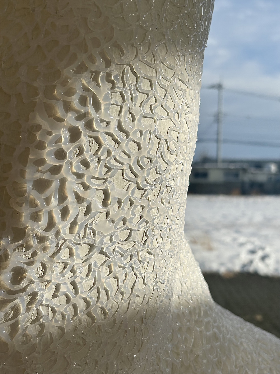 「創作とまわる未来」 20歳という節目を迎え、作品を作れるのはこれまでの人生経験があってこそだなと改めて思った。それが例え悲しくても嬉しくても、色んな人との関わりは作品を生む力となり、そこからまた新しい関わりが始まるという循環を繰り返しながら、全ての人が目指す場所へ進んでいけたらという願いを込めて作品を作った。 |